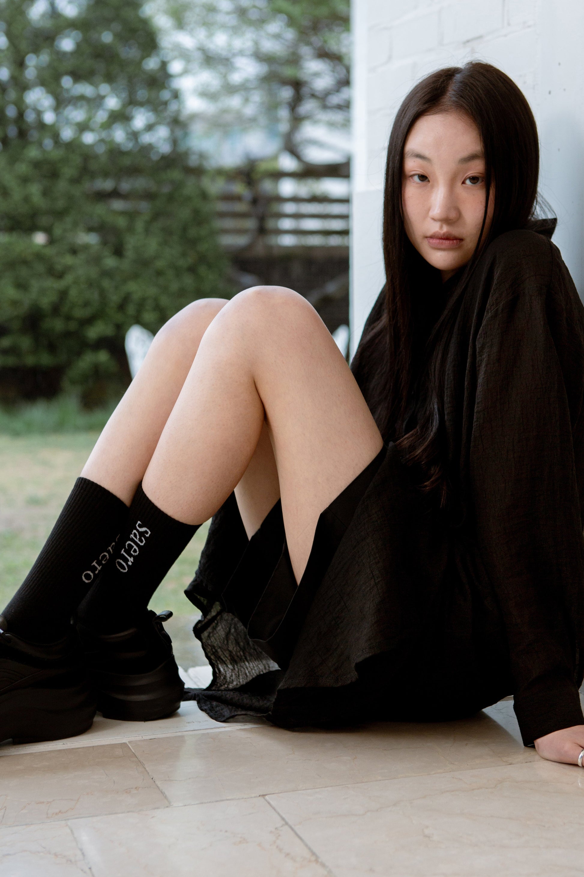Saero Collective's first logo apparel item - a pair of ribbed crew socks for everyday wear, stitched with the brand's logo 'saero', which means 'new' in Korean.
