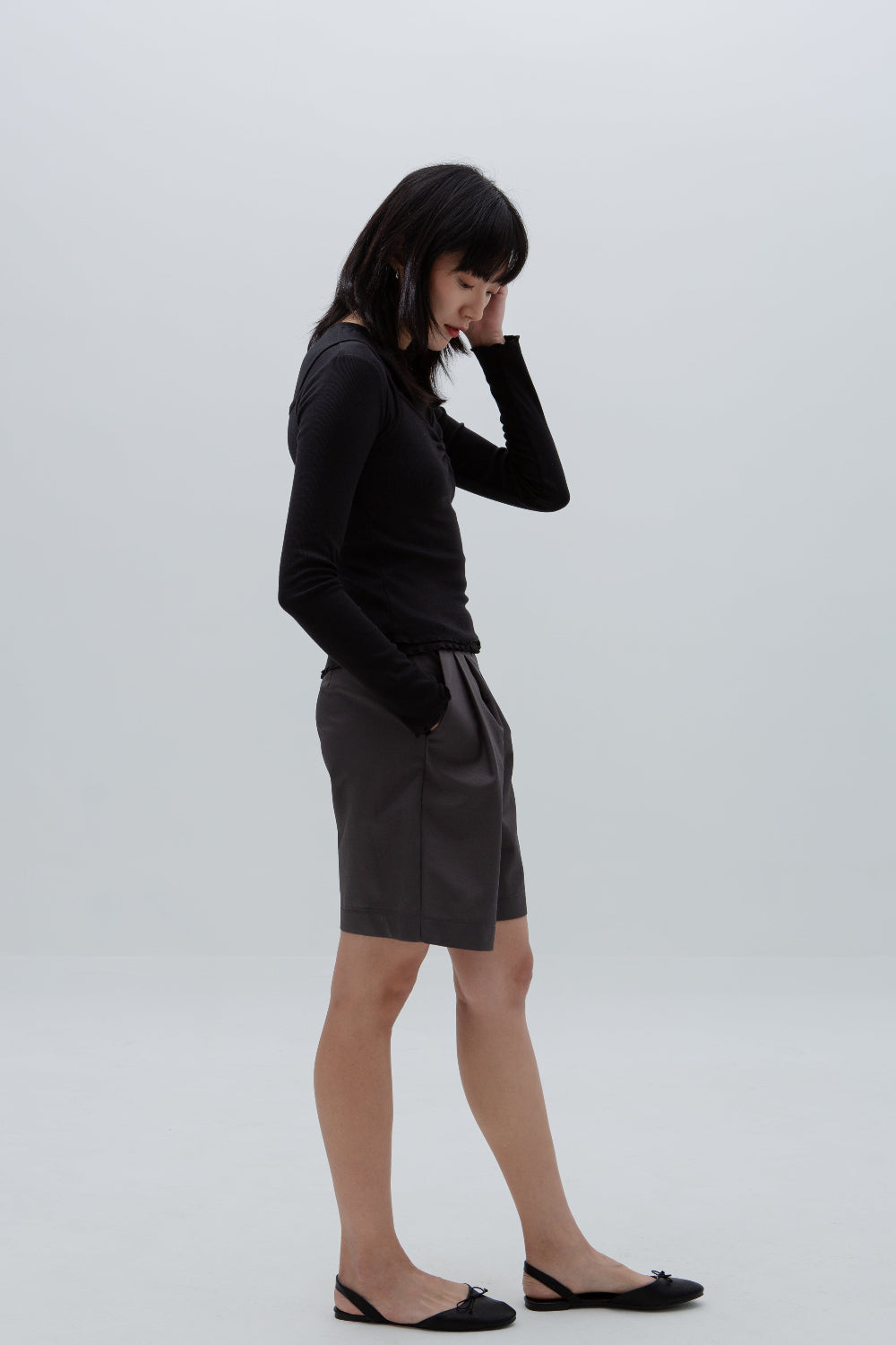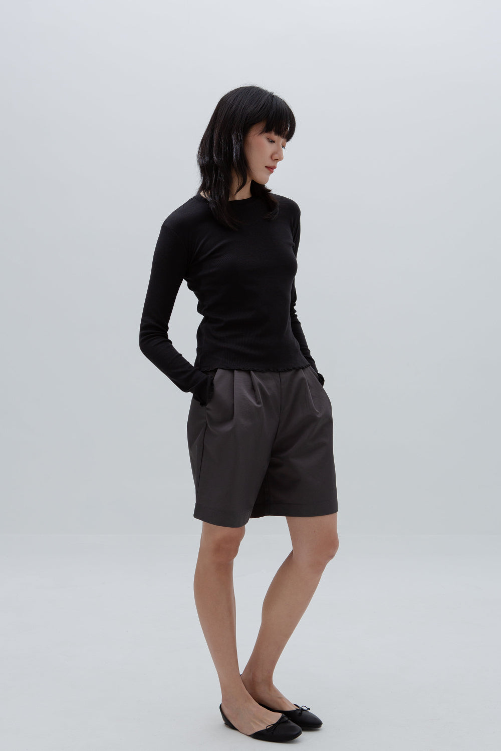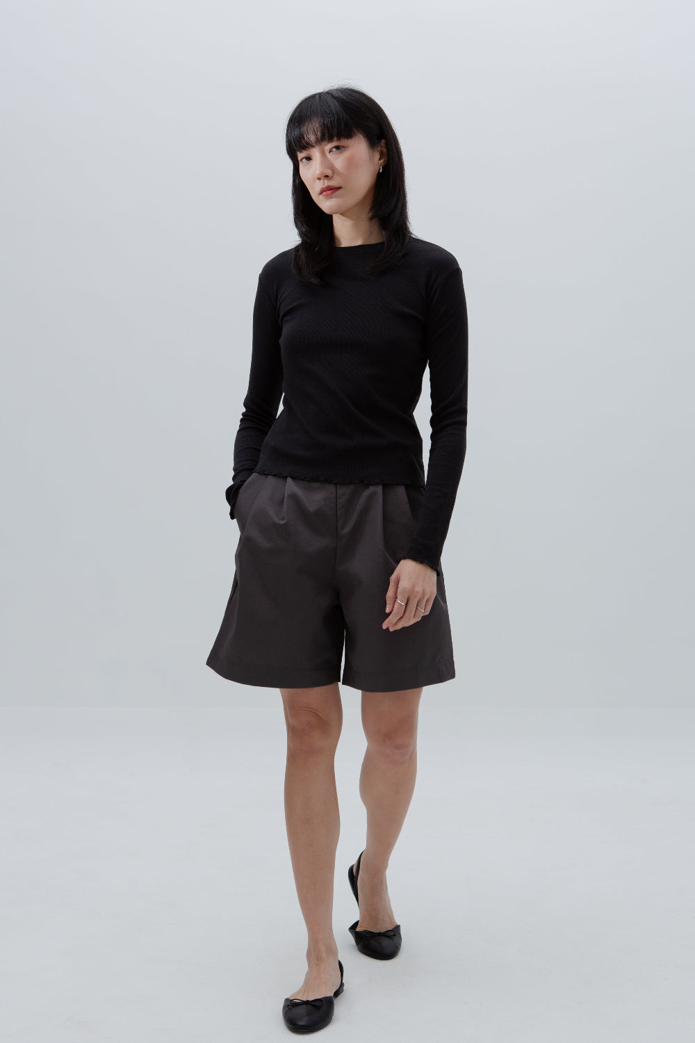 A two-set layer top. Made of ultra soft, lightweight and stretchable cotton modal, one  long sleeve top with one thin tank top, both in same colour and material for a coordinated layered summer look. Beautiful lettuce hem details adds a playful, textured edge.
