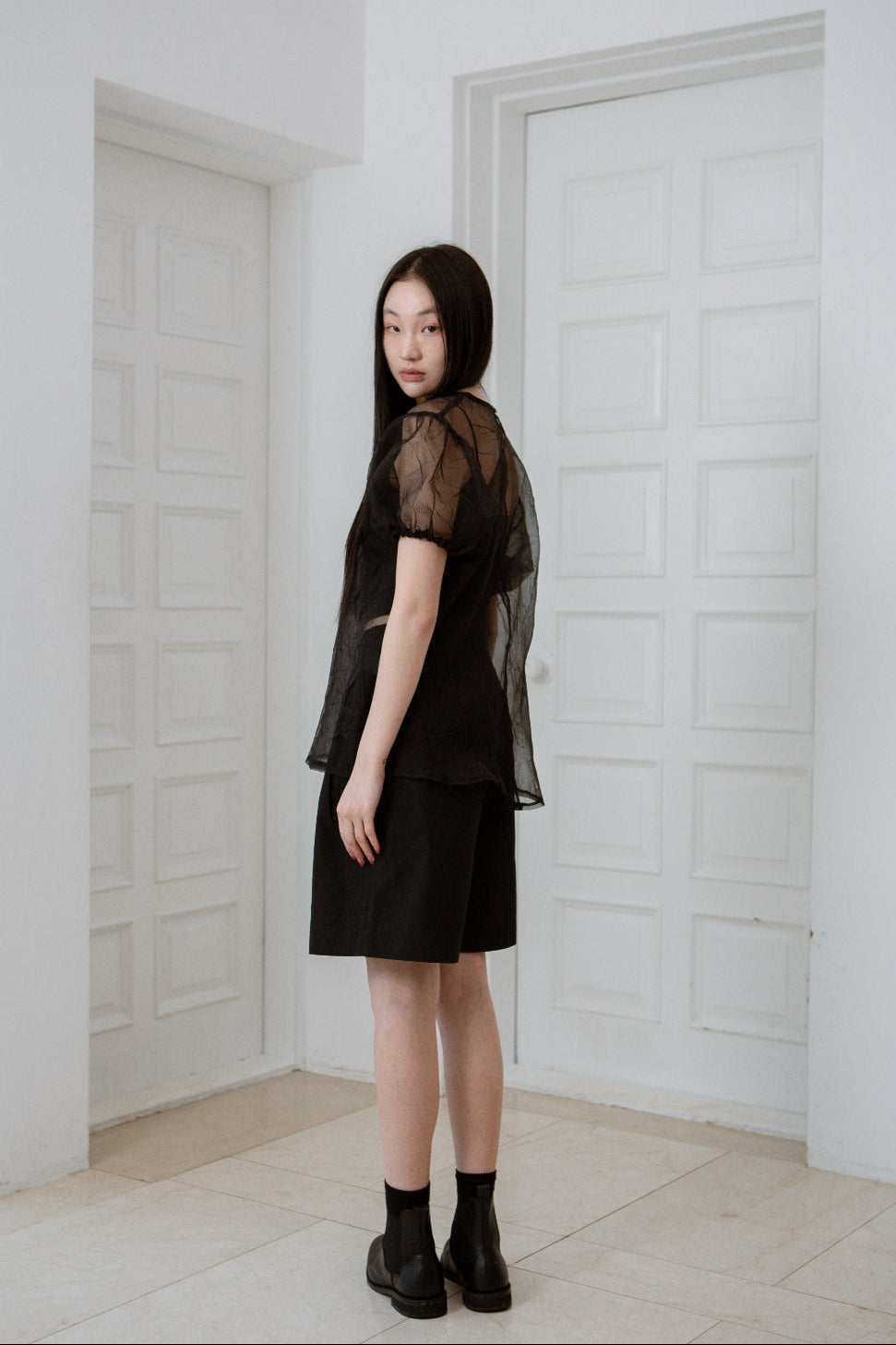 Delicate in appearance, strong in design. Tailored for fashion forward individuals - the dreamers, the stylists, the statement-makers or anyone who wants something unique to add to their wardrobe. A lightweight, sheer top designed for quiet impact, it’s crafted from translucent yet textured organza with a barely-there feel and a structured yet airy drape. A modern design with fairy-like details.