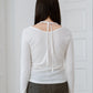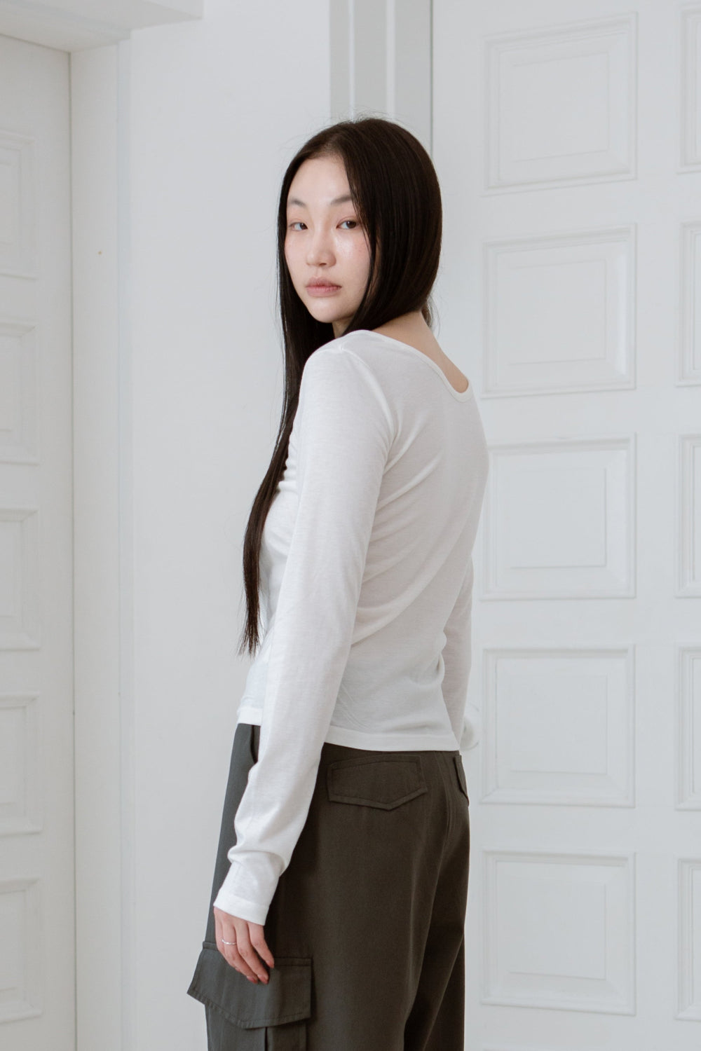Made of tencel and rayon, both ultra breathable fabric from natural sources, this soft and stretchable long sleeve top is perfect even for warm days.